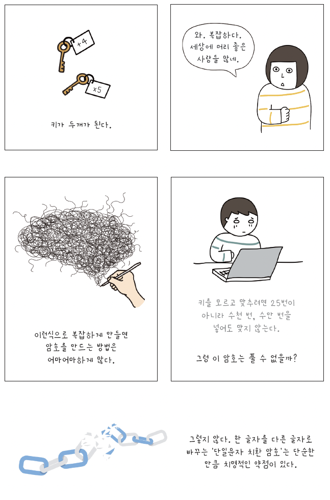 | 《결정적 사건으로 배우는 암호학》 4화 암호해독술 (0) | 2024.02.19 |
